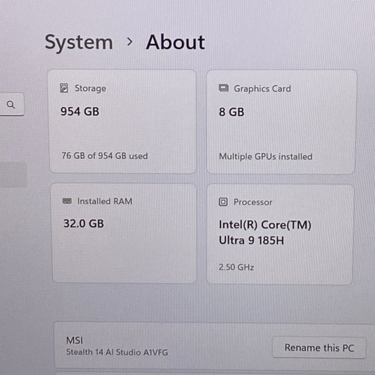 MSI Stealth 14 AI Studio MS-14K2 14" Core Ultra 9 185H 2.5GHz 32GB RAM 1TB SSD GeForce RTX 4060
