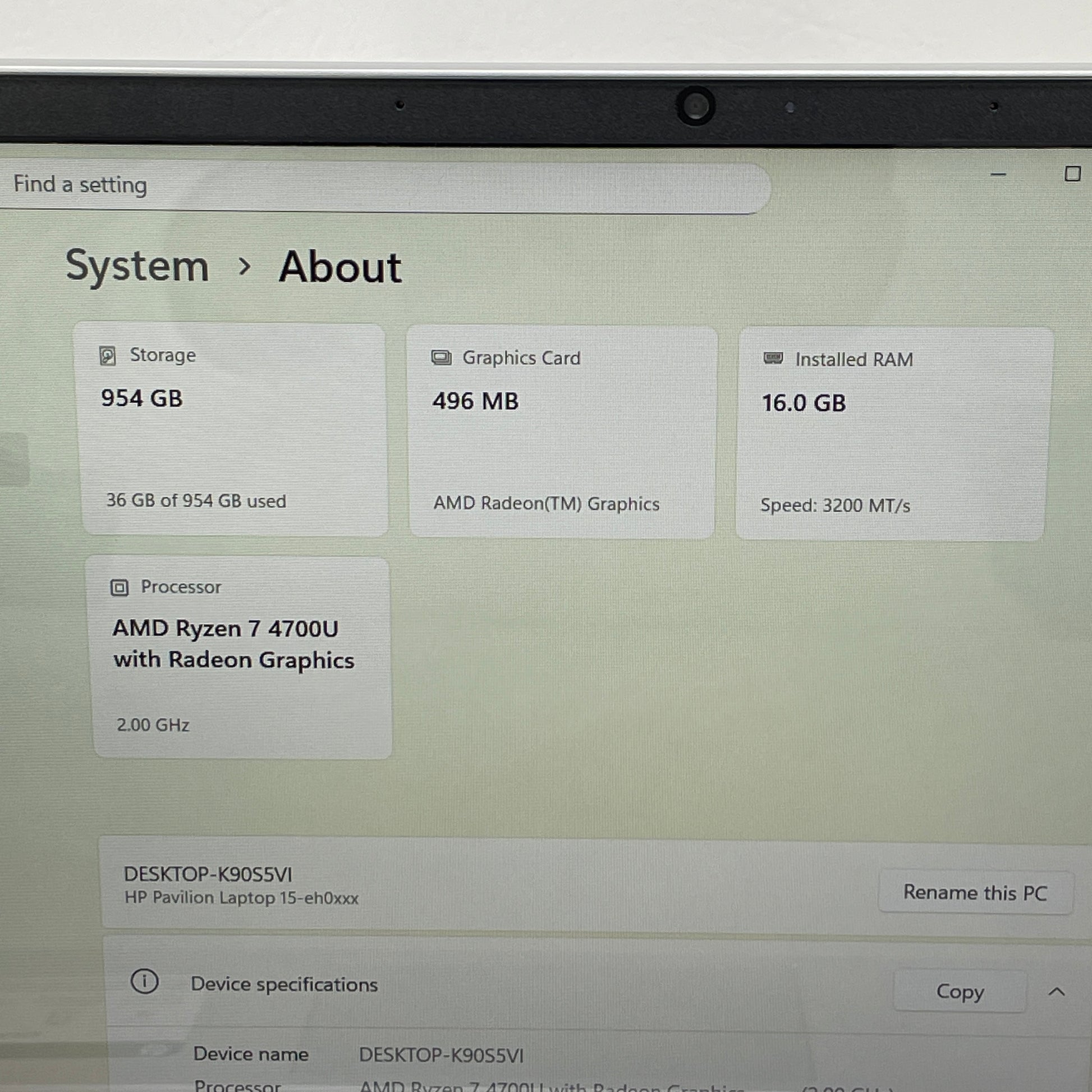 | Processor | Ryzen 7 4700U |